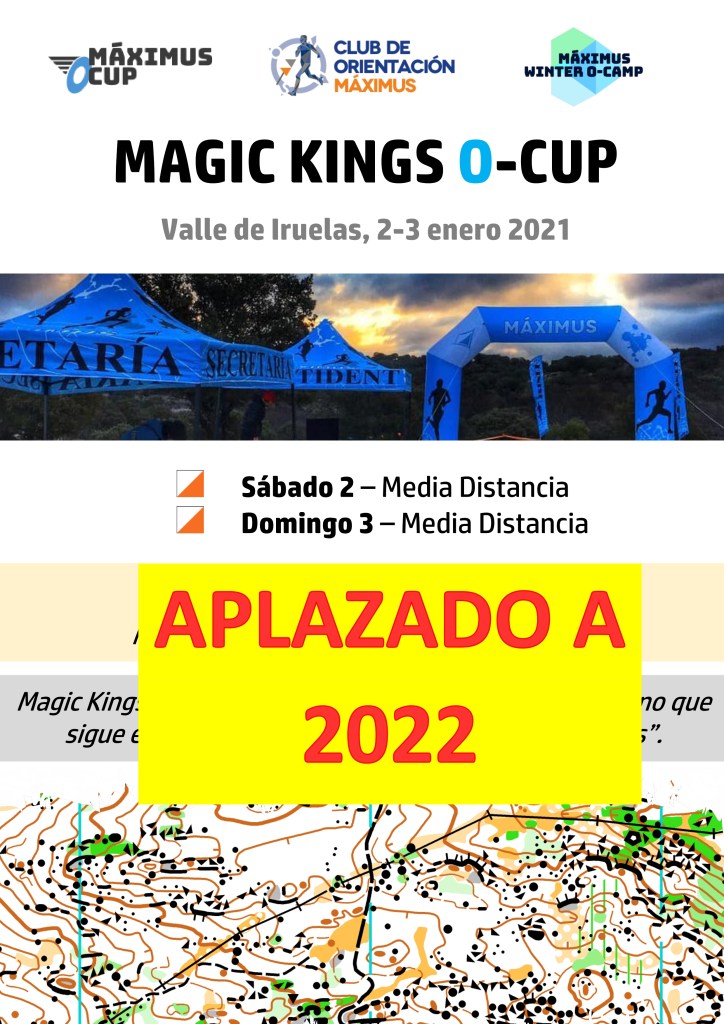 For this reason, and with great regret, we are forced to postpone the second edition of Magic Kings O-Cup to 2022. We are sorry for the inconvenience caused, and we wish to see you at the great winter event, the Maximus O Meeting, whose venue will be “El Barraco “(February 18th-21st, 2021) and scoring for the Spanish Orienteering League and the World Ranking.
